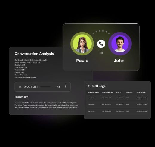 Califica prospectos, agenda citas y personaliza conversaciones fácilmente con agentes de llamadas IA disponibles 24/7.
